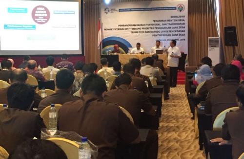 Kementerian Desa, Pembangunan Daerah Tertinggal, dan Transmigrasi (Kemendes PDTT) menggelar Sosialisasi Peraturan Menteri Desa, Pembangunan Daerah Tertinggal, dan Transmigrasi (Permendesa PDTT) Nomor 19 Tahun 2017 tentang Prioritas Penggunaan Dana Desa Tahun 2018 dan Metode Pencegahan Penyimpangan Dana Desa kepada para pemangku kepentingan desa di Mataram, Nusa Tenggara Barat (NTB), Jumat (27/4). Hal tersebut ditujukan untuk meningkatkan pemahaman para jaksa dan kepala desa mengenai peruntukan prioritas penggunaan dana desa agar tidak terjadi penyimpangan.
